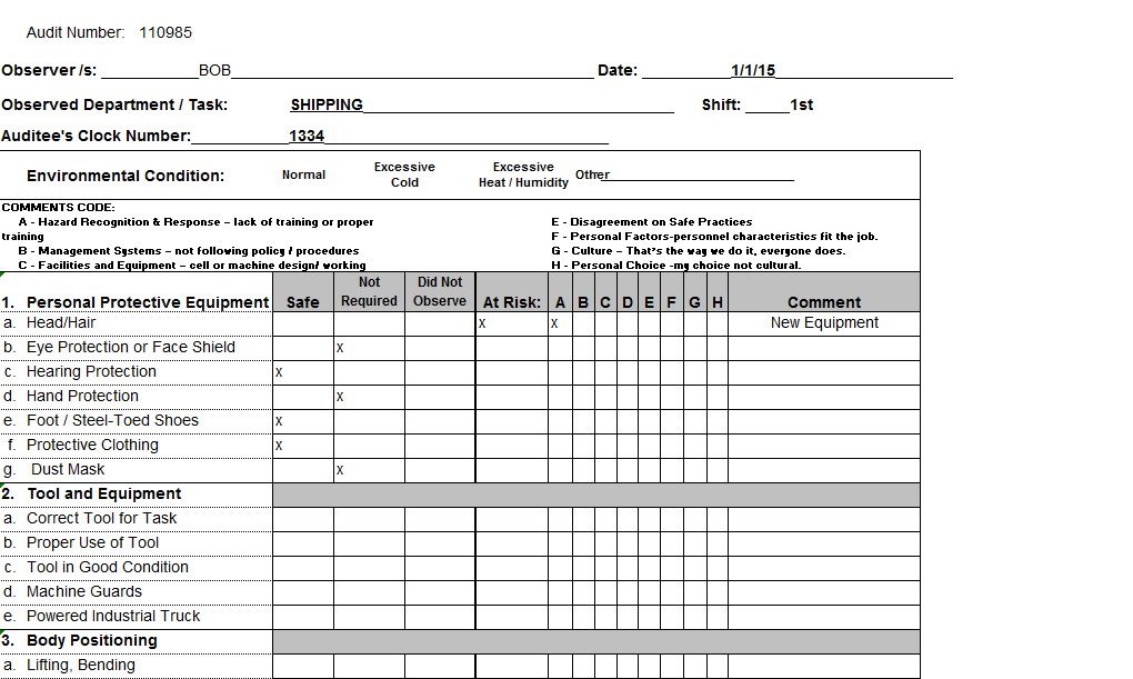 • A combo box for the "Safe", "Not Required", "Did Not Observe", "At Risk" selection